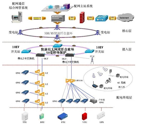 | 配网自动化通信网络由各配电子站、配电中心站的通信设备通过特定的通信媒介组成。随着智能配电网的提出,配电网自动化的信息采集及指令传送成为电力通信面临的新课题。由于配电网设备数量大、种类多、分布广,如何在满足供电可靠性的基础上,选择适合我国配电网现状并满足用户需求的可靠而经济的通信方式显得至关重要。 福建毅天凭借在电力通信领域多年经验的积累,根据电力系统配网自动化的特点,融合了现有各种通信技术,包括MSTP、EPON、工业以太网交换机,以满足配网自动化的各种需求。实现配网自动化的实时监视、数据采集、分析系统目前状态等功能。 |